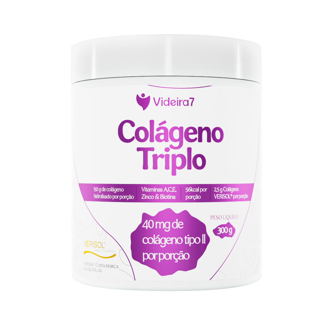 INGREDIENTES: Peptídeos bioativos de colágeno hidrolisado, peptídeos bioativos de colágeno hidrolisado com peso molecular médio de 2 kDa (Verisol®), colágeno tipo 2, maltodextrina, ácido ascórbico (vitamina C), acetato de racealfatocoferol (vitamina E), bisglicinato de zinco, acetato de retinol (vitamina A), biotina (vitamina B7), edulcorante sucralose, antiumectante Fosfato tricálcico (INS 341iii), acidulante Ácido cítrico (INS 330) e aromatizante.
